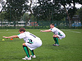 De risico's op kwetsuren lijkt nihil, en alles is bedacht in termen van voetbal, dus meestal rechtstaande oefeningen.